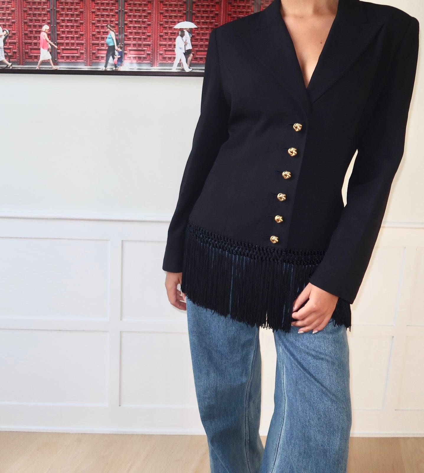 Valentino Navy Fringe Blazer